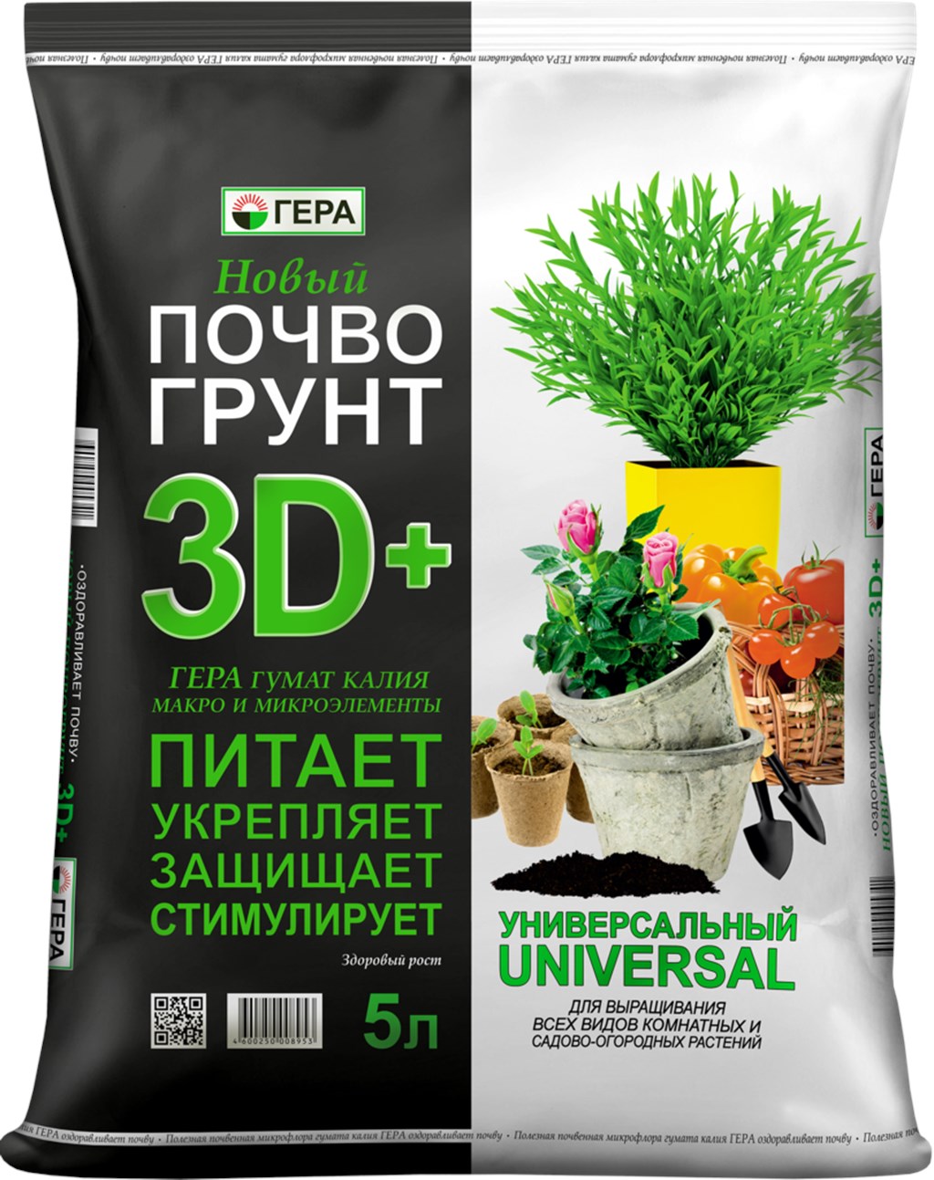 Почвогрунт ГЕРА 3D+ Универсальный 5 л 10...