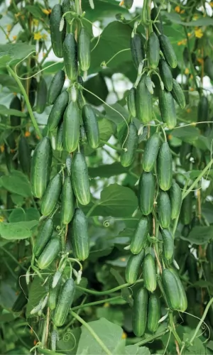Раннеспелый (37-40 дней), партенокарпический гибрид - спринтер букетного типа для выращивания в открытом и защищенном грунте. В каждой пазухе 4-5 завязей. Зеленцы цилиндрические, мелкобугорчатые, сочные, хрустящие, без горечи, длиной 9-12см. Назначение универсальное. Ценность гибрида: обильное плодоношение (до 15кг с одного куста за сезон), выравненность плодов, устойчивость к вредителям и болезням, отличная лежкость, неприхотливость к погодным условиям. Перед посадкой семена не замачивать, обработаны микроэлементами.