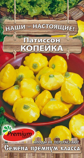 Супер патиссон! Домочадцы их всегда съедают первыми! При консервировании и мариновании по вкусу превосходит огурцы! Новый ультраскороспелый (от всходов до созревания 35-37дней), кустовой сорт корнишонного типа. Плоды жёлто-оранжевого цвета, массой 15-30г (самый оптимальный размер для цельноплодного консервирования), не трескаются и не перерастают( в течение 10-15 дней). Мякоть плотная, нежная и хрустящая, с повышенным содержанием витаминов. Плоды используются для цельноплодного консервирования и маринования, как отдельно, так и совместно с огурцами и помидорами, а так же для домашней кулинарии (тушения, жарки), заморозки.