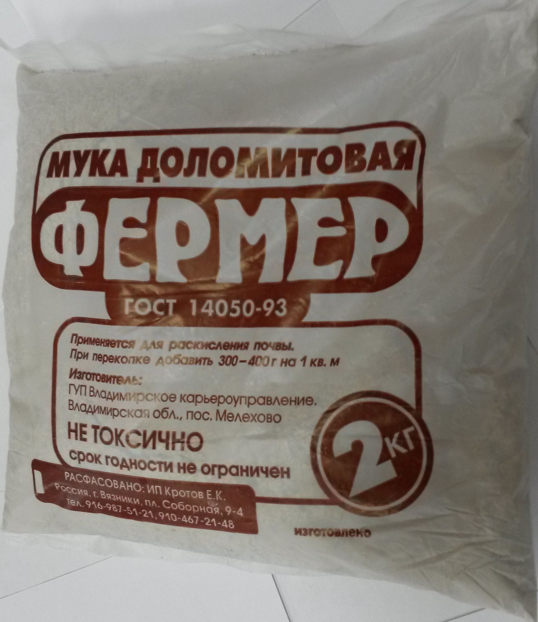 Доломитовая мука 2 кг 10 штук/место...